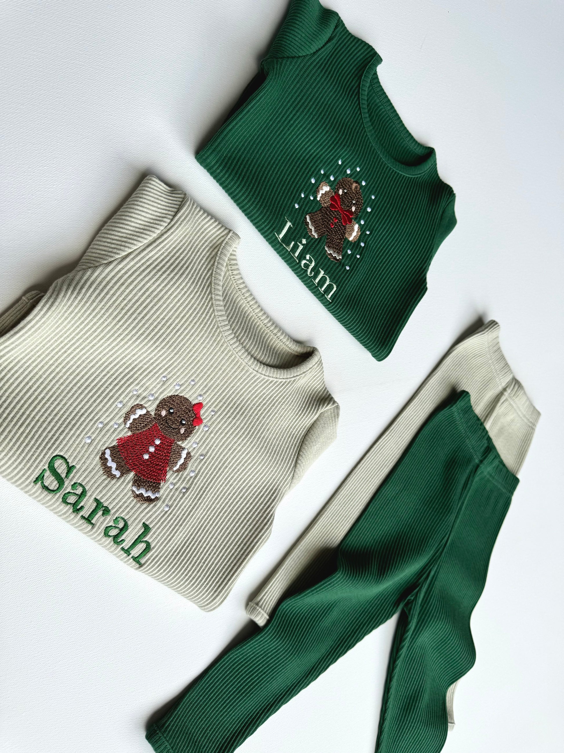 ⢠Exclusive Gingerbread Man Embroidery: Personalize each set with a name or initial alongside our adorable gingerbread man or gingerbread girl for that extra-special touch!