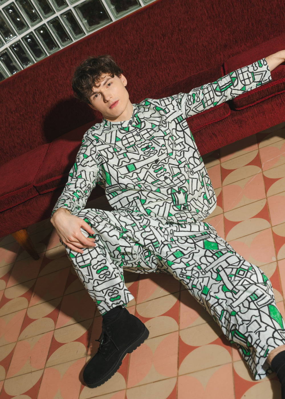 Experience effortless style with our Circuit Garden Twill Weave Trousers. Adorned with a unique hand drawn print, these pants are visually striking and offer comfort and chic all year round. Featuring a playful pockets and a tapered balloon silhouette, they are the perfect addition to your wardrobe.