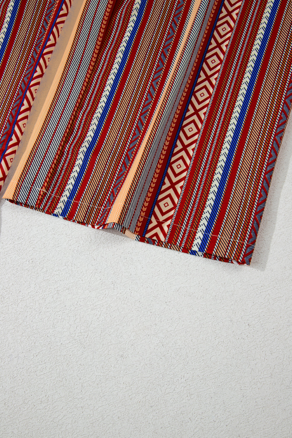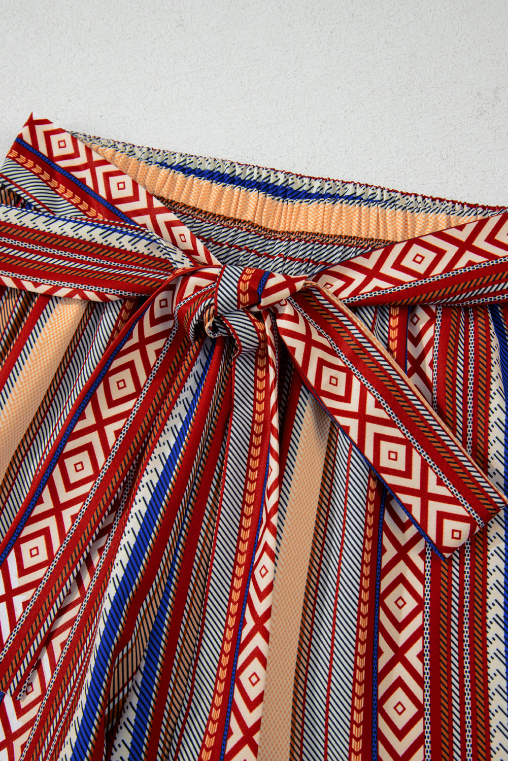 Red Boho Ethnic Striped Print Tie Waist Wide Leg Pants